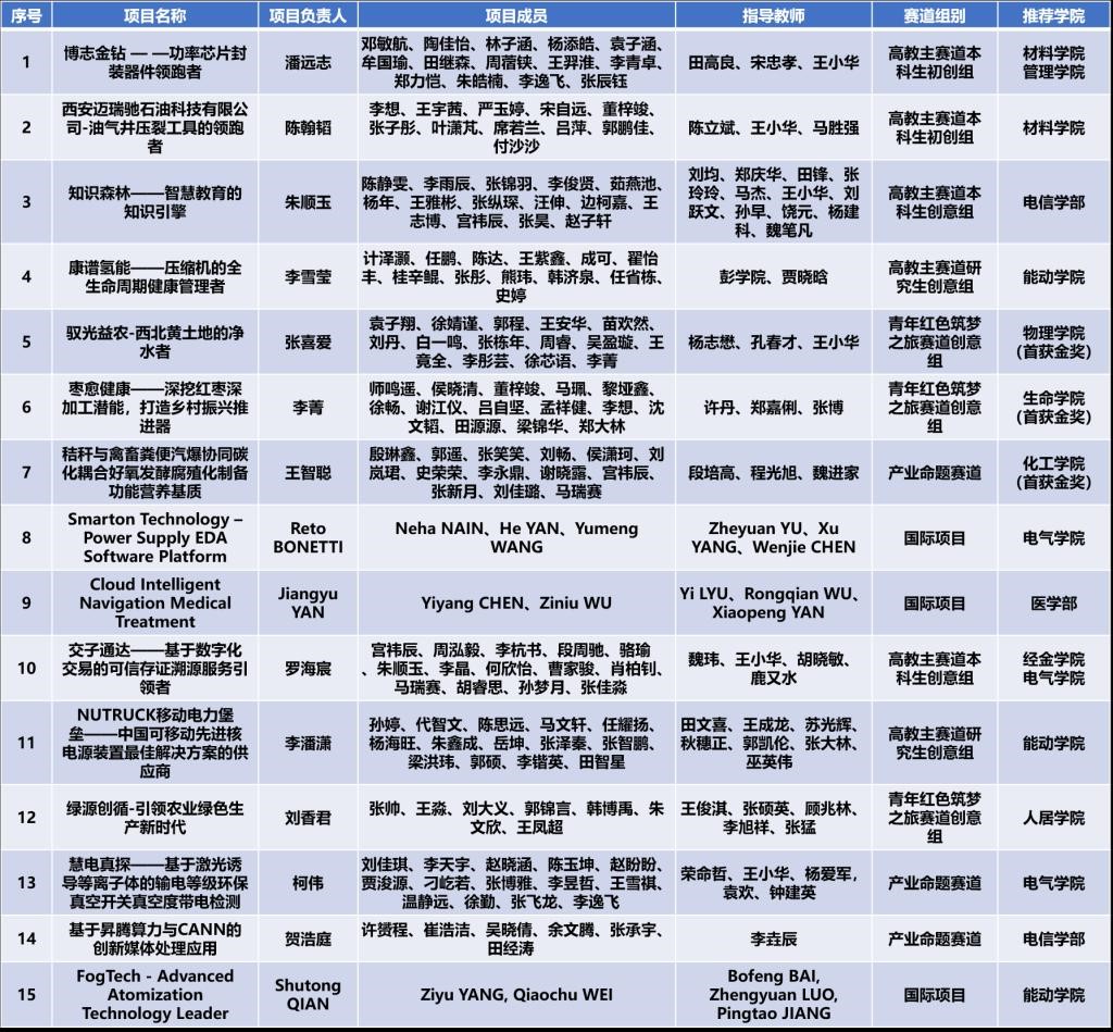 第八届中国国际“互联网+”大学生创新创业大赛由教育部等国家部委和重庆市人民政府联合主办、重庆大学承办,以“我敢闯、我会创”为主题。自启动以来吸引了来自全球111个国家和地区的340万余个项目、1450万余人次报名。经过校级初赛、省级复赛、网上评审等环节的层层选拔,最终有1128个项目入围全国总决赛。西安交大共有6个主赛道项目、3个“青年红色筑梦之旅”项目、3个产业赛道项目,以及学校推荐的3个国际项目入围全国总决赛。