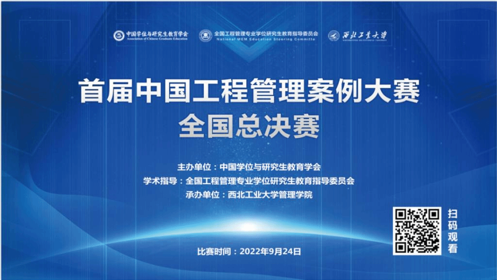 9月24日,首届中国工程管理案例大赛全国总决赛落下帷幕。本次大赛由中国学位和研究生教育学会主办,全国工程管理专业学位研究生教育指导委员会提供学术指导,西北工业大学管理学院承办。大赛分为单位内部选拔、区域晋级赛和全国总决赛三个阶段。共有西安交通大学、天津大学、北京大学、北京航空航天大学、西北工业大学、东北农业大学、河海大学、暨南大学、上海交通大学、中国科学院大学、成都湃尔智芯科技有限公司、上海建工一建集团有限公司选送的12支队伍角逐总决赛。
